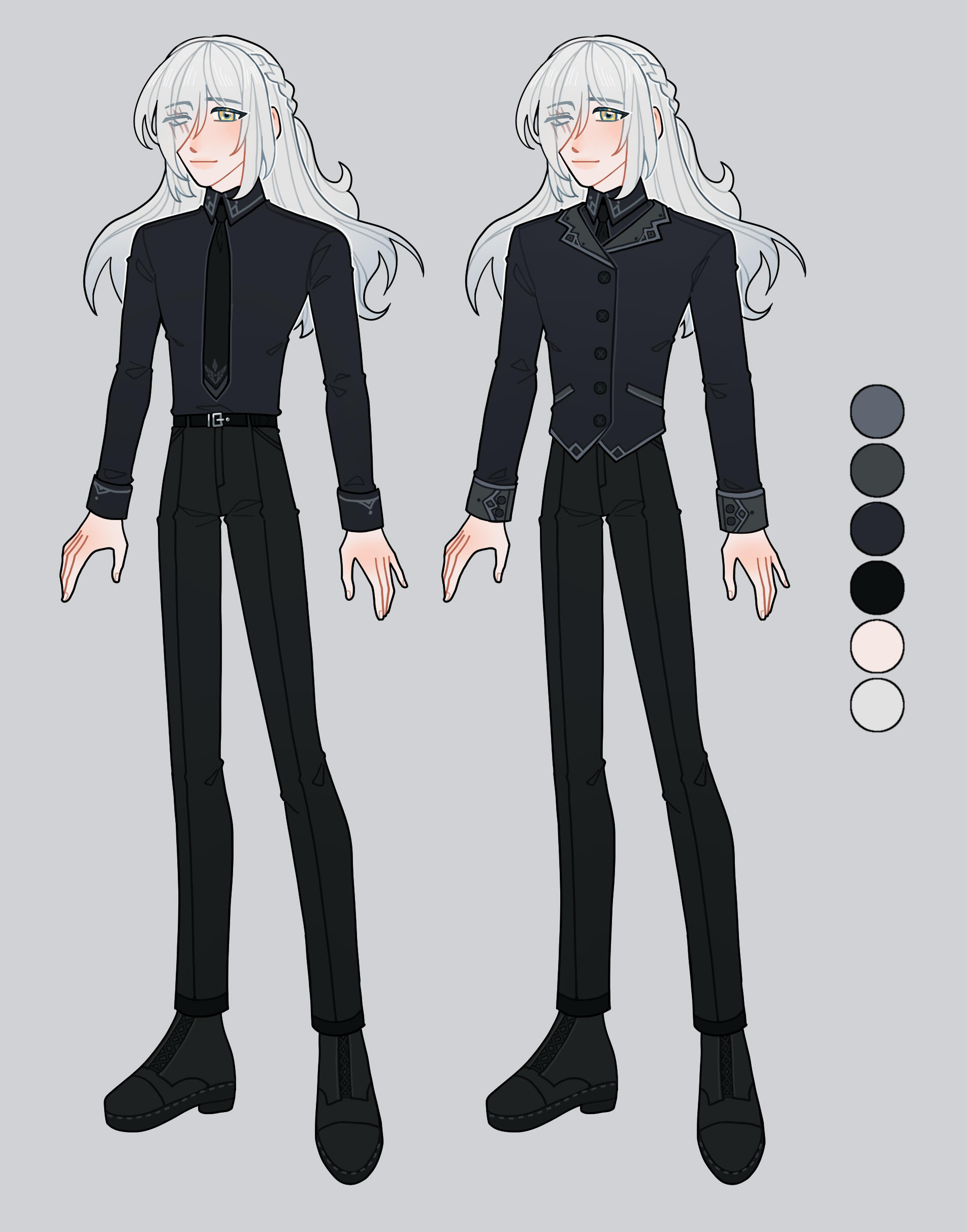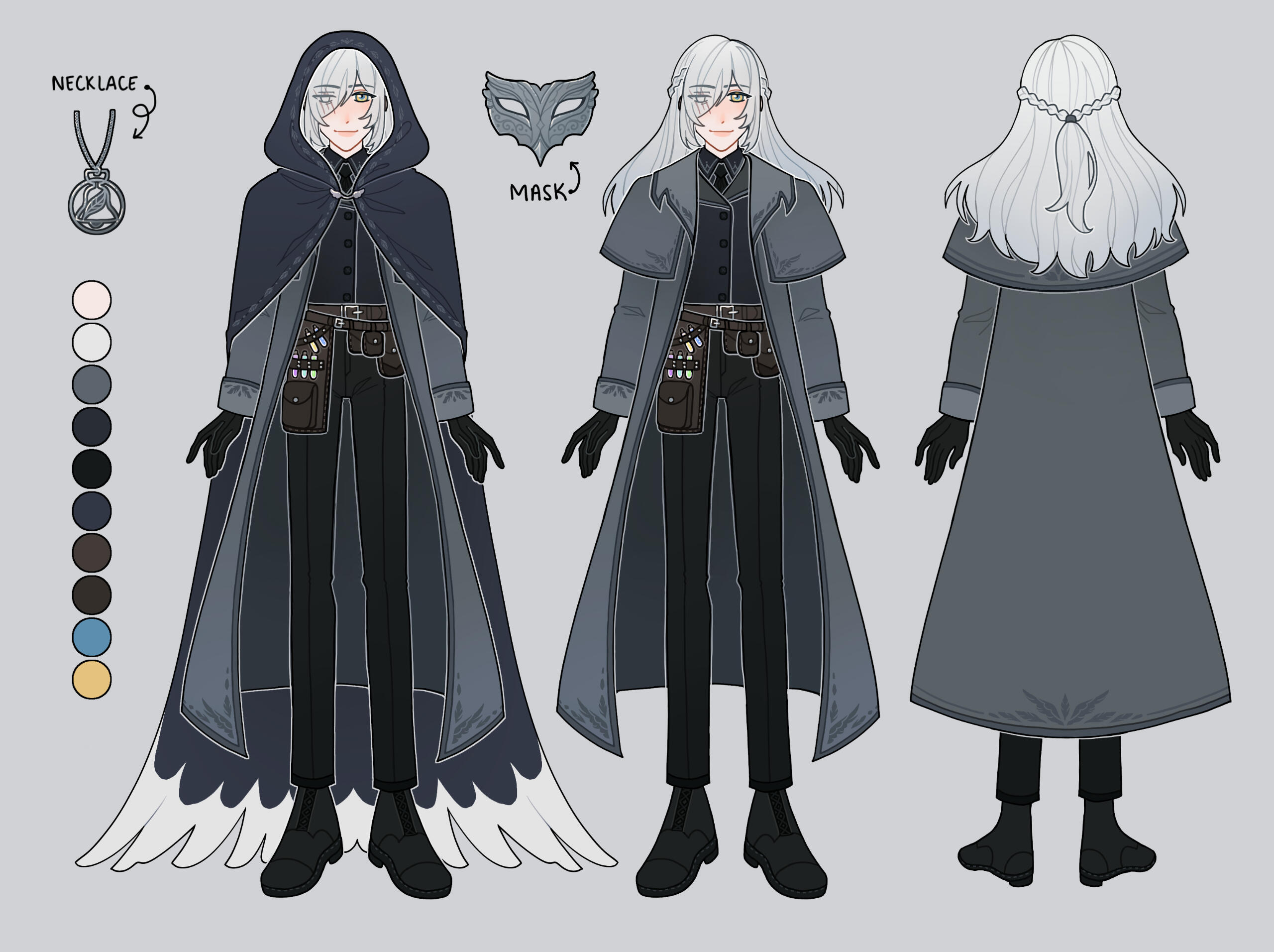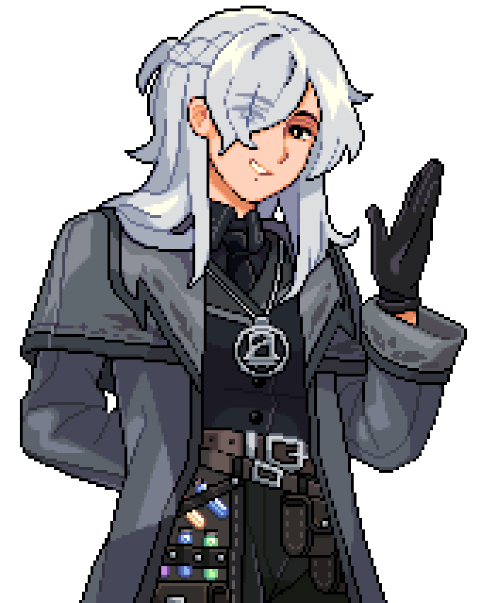 ❝ An unsettling man who wears a hood and a face cloth; his eerie moniker only lends to his mysterious aura. The right side of his face is heavily scarred, and curtained by silvery bangs, but his gaze is no less piercing for it. Though he's known for his laconic responses, as well as his macabre sense of humor, he's also known to be playful, witty, and frankly lacking much in the way of dignity. Still, even if his smithing is equally as unpretentious and unsophisticated as he is himself, the swords he produces are of exquisite caliber; they speak of someone who takes great pride in producing high-quality work.Indeed, he's fiercely dedicated to his responsibilities. Ternate is, in many aspects, driven by passion, and rarely if ever does anything halfheartedly. This is especially true of his undertaker duties, during which he sheds his trademark cloak and becomes far warmer of a person. After all, to be a undertaker means one must deal with mad, messy grief as much as one does death, and that requires gentleness and patience befitting a saint. He strives to be an attentive listener who prioritizes his clients' comfort above all else, and essays to ascertain (and diligently attend to) even their unspoken needs; he will dutifully study all local funerary rites and traditions in order to offer both the deceased and their loved ones a proper funeral. There is no time that is early or too late, there is nothing that he would consider too much trouble, and there is nothing that could stop him from getting his job done.